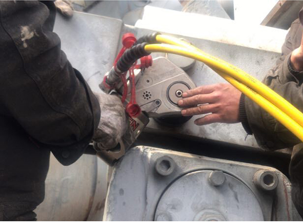 在沒有液壓扳手之前,石油化工、機(jī)械行業(yè)的工人都是使盡全力用大錘敲打來鎖緊高壓容器主法蘭螺栓,費(fèi)時(shí)費(fèi)體力。沒有辦法,只能通過工人們的加量和感覺,實(shí)際上不好準(zhǔn)確控制扭矩,因?yàn)榕ぞ夭粔蚧虿痪鶆蛩畨涸囼?yàn)有時(shí)需要多次才能成功。