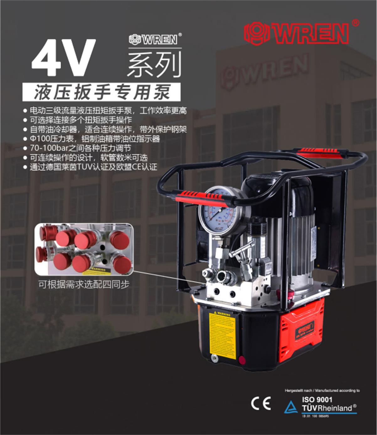 4V系列為液壓扳手專(zhuān)用泵,采用集成方式組裝,由動(dòng)力單元、電氣電元、控制裝置等組成第一種獨(dú)立完整的液壓裝置,具有流量大、體積小、重量輕、結(jié)構(gòu)簡(jiǎn)單、操作方便、工作壓力高等特點(diǎn),并且高壓出口(A口)出油壓力可在70~700bar間任意調(diào)節(jié)。