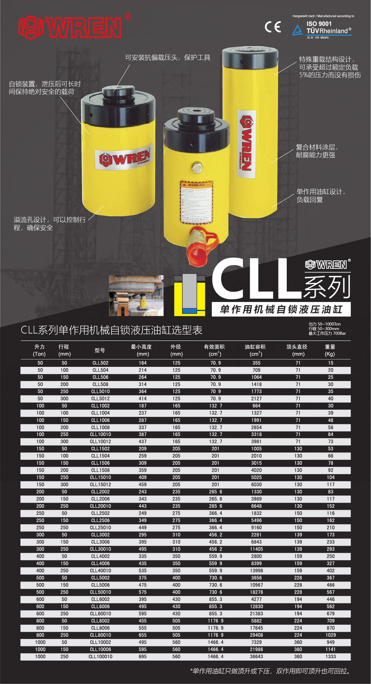 CLL系列單作用機(jī)械自鎖式液壓油缸選型表