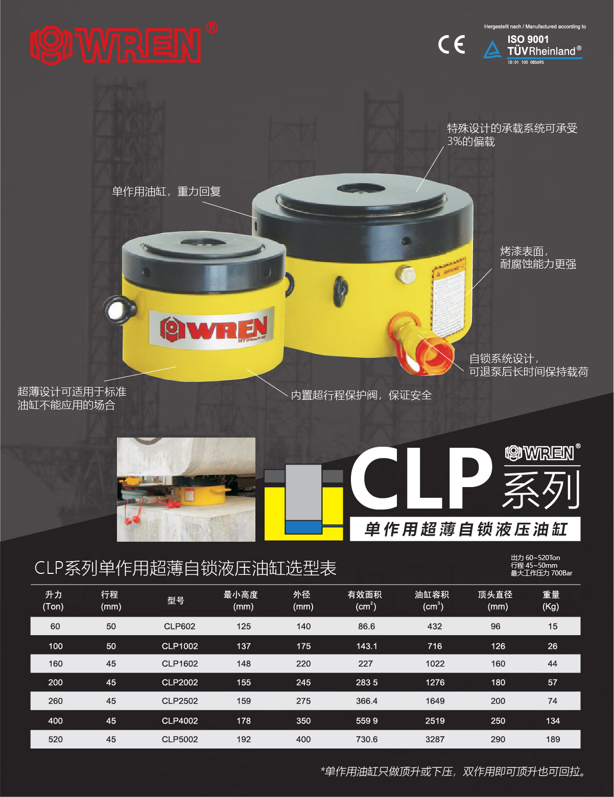 CLP系列超薄型液壓油缸選型表