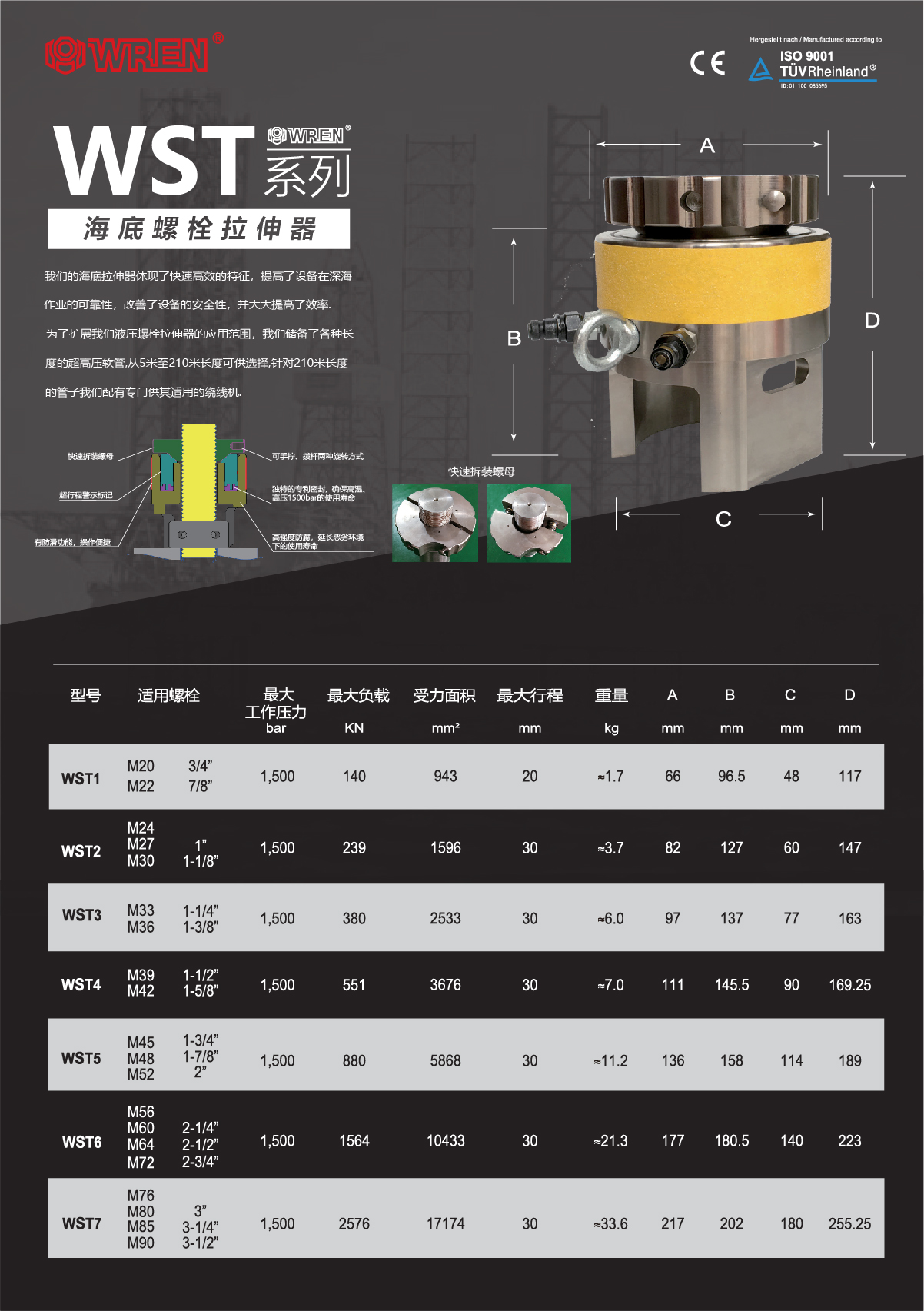 WST系列 快速高效的海底螺栓拉伸器規(guī)格尺寸表