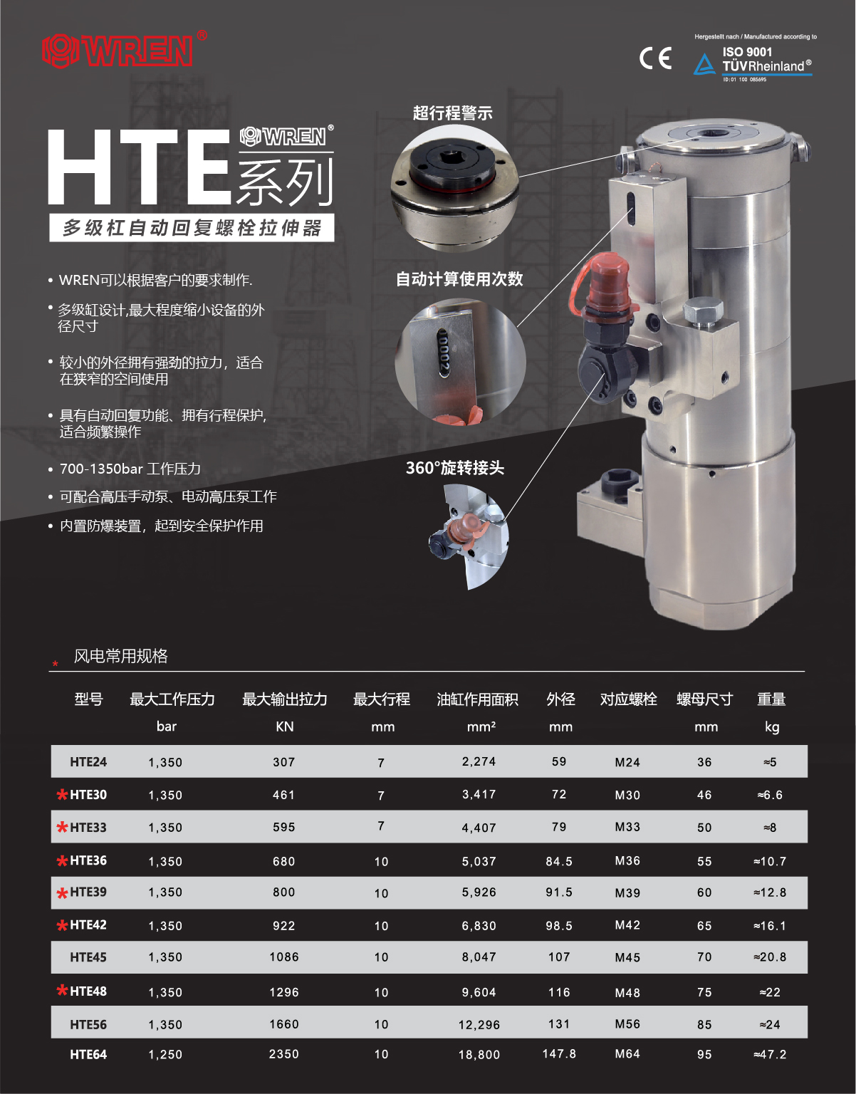 - 多級缸設(shè)計,最大程度增加拉伸長度 - 較小的外徑擁有強勁的拉力,適合在狹窄的空間適用 - 彈簧自動回復(fù)、擁有過行程保護,適合頻繁使用 - 700~1500bar 工作壓力 - 可配合高壓手動泵、電動增壓泵工作