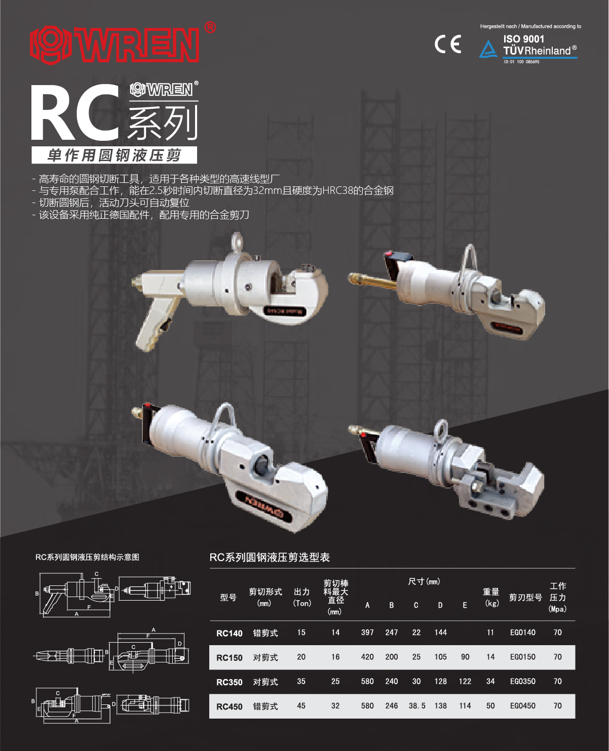 ? ? ? ? WREN液壓剪可以切割圓形、四方、六角和二次交叉的鋼絲。由于其小巧,高效的特點(diǎn),我們的液壓剪廣泛應(yīng)用于鋼絲生產(chǎn)行業(yè)。SK用于標(biāo)準(zhǔn)切割,標(biāo)準(zhǔn)的WREN液壓剪含SK切割片,可以切割直徑最大為28mm的材料,特殊型號(hào)的液壓剪含SK系列刀片可以切割的最大直徑為80mm。
